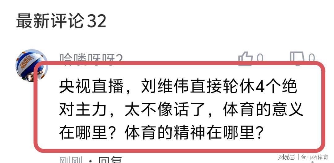 8868体育app-不像话!央视直播,刘维伟却“下架”4大主力,网友:体育精神呢?